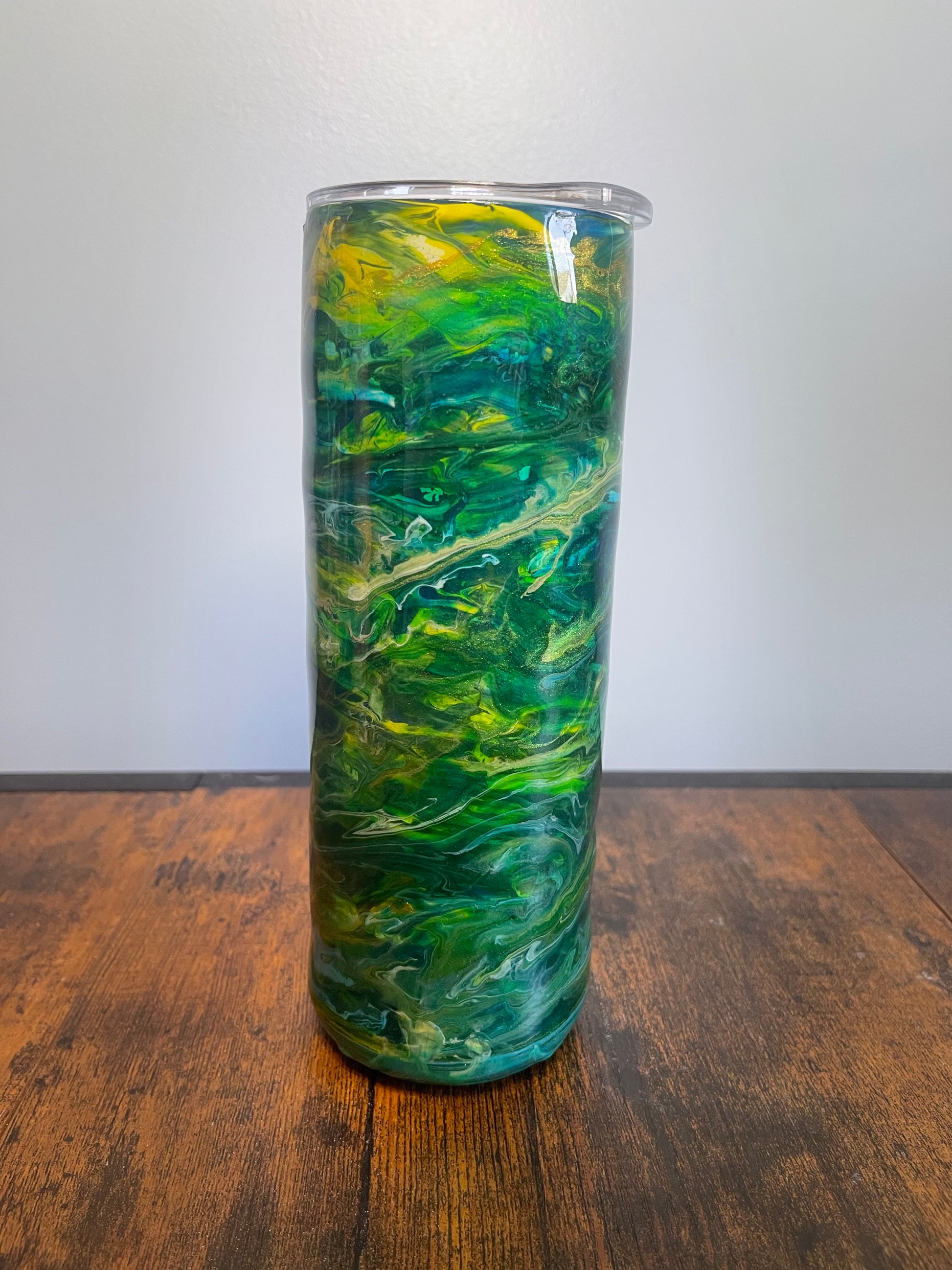 Sip in style with our Field of Kilarnney Tumbler Straw Cup! Adorned in lush Irish greens and shimmering gold with a cheerful pop of yellow, this cup brings the vibrant meadows of Ireland to your daily hydration routine. Perfect for keeping your drinks just right while adding a touch of Emerald Isle magic to your day! As with all our cups this one of a kind cup comes with a straw brush for cleaning.